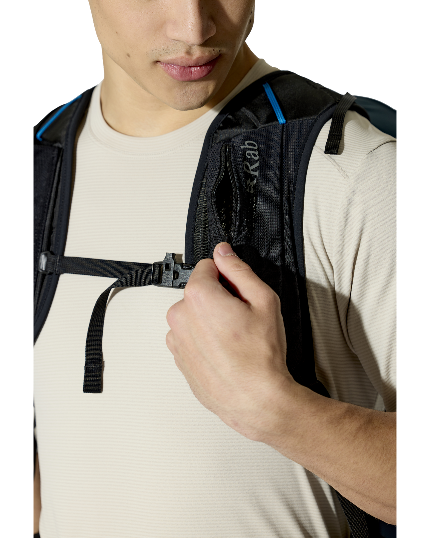 • Harness is perforated for extra breathability, with an easy-access chest pocket and soft flask storage