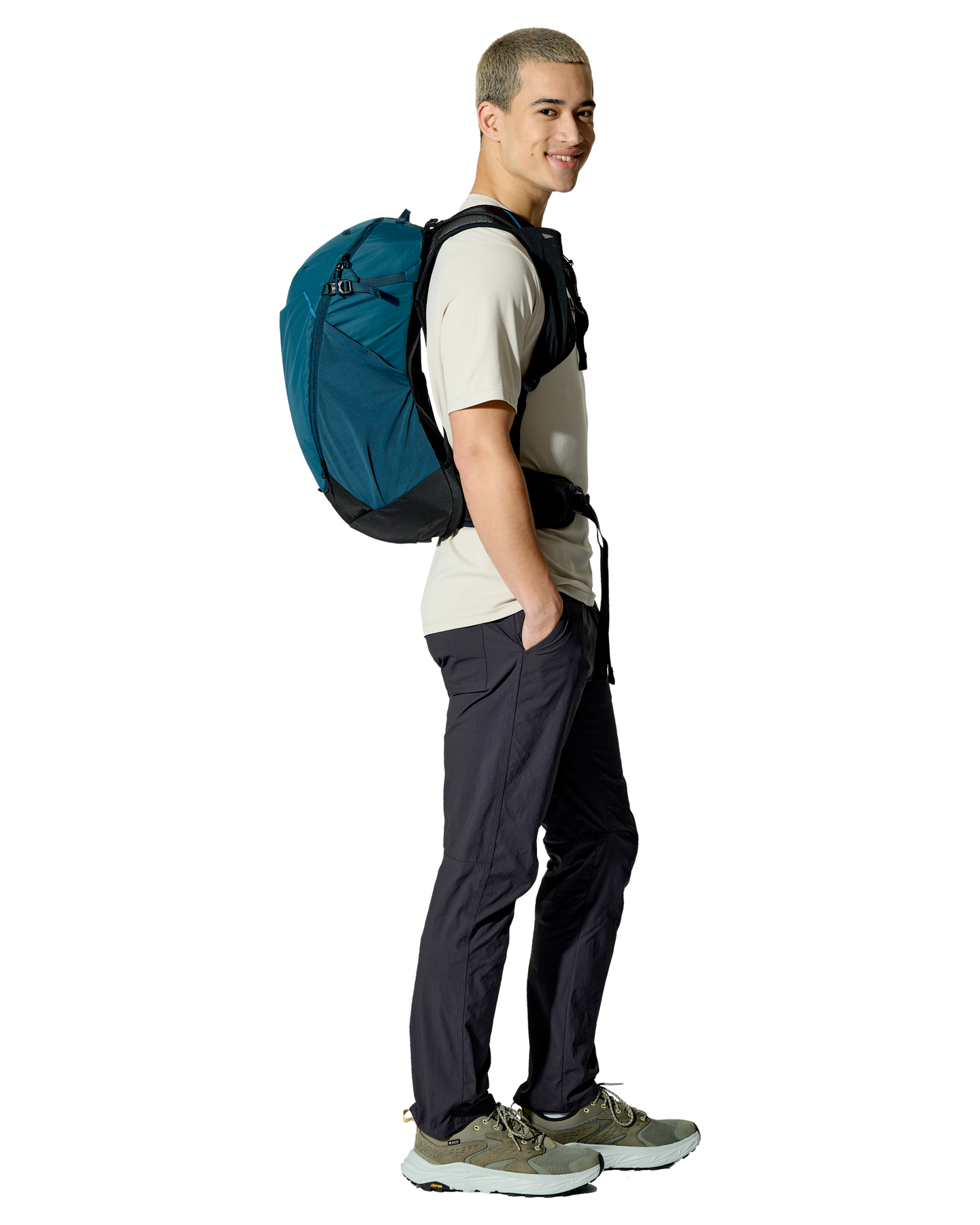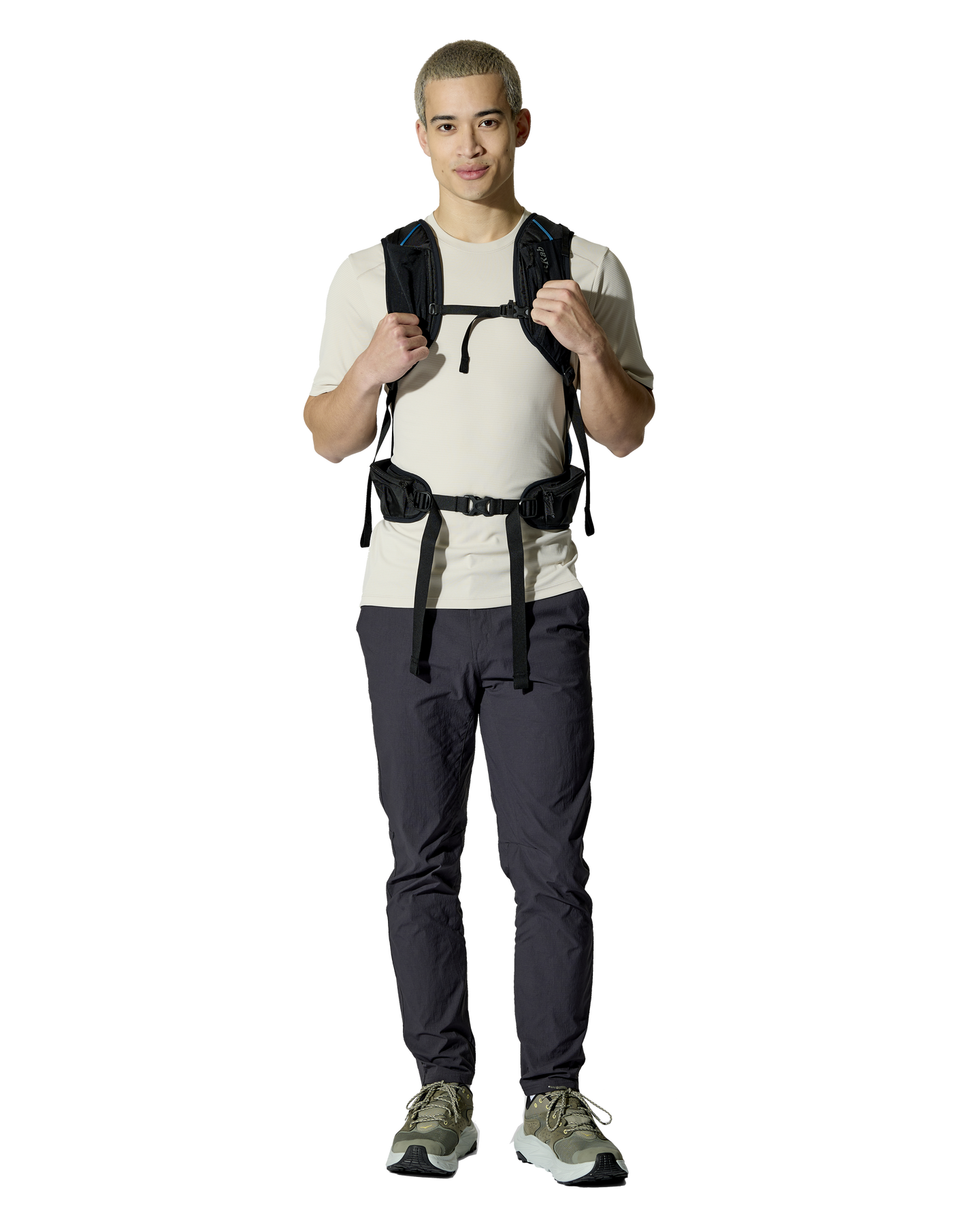 Stretch front stash pocket, Stretch mesh water bottle side pockets, Chest strap storage for on-the-go access to a soft flask and essentials, Forward pull hipbelt adjustment with zipped pockets