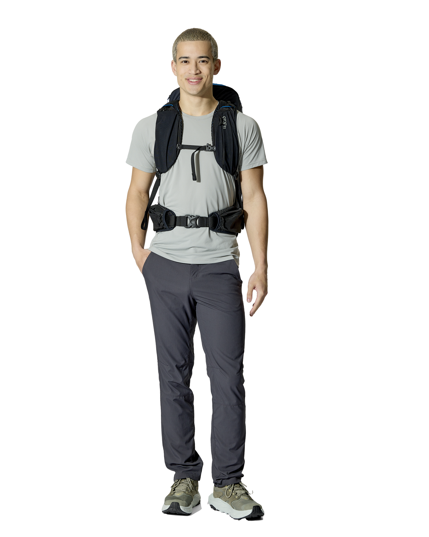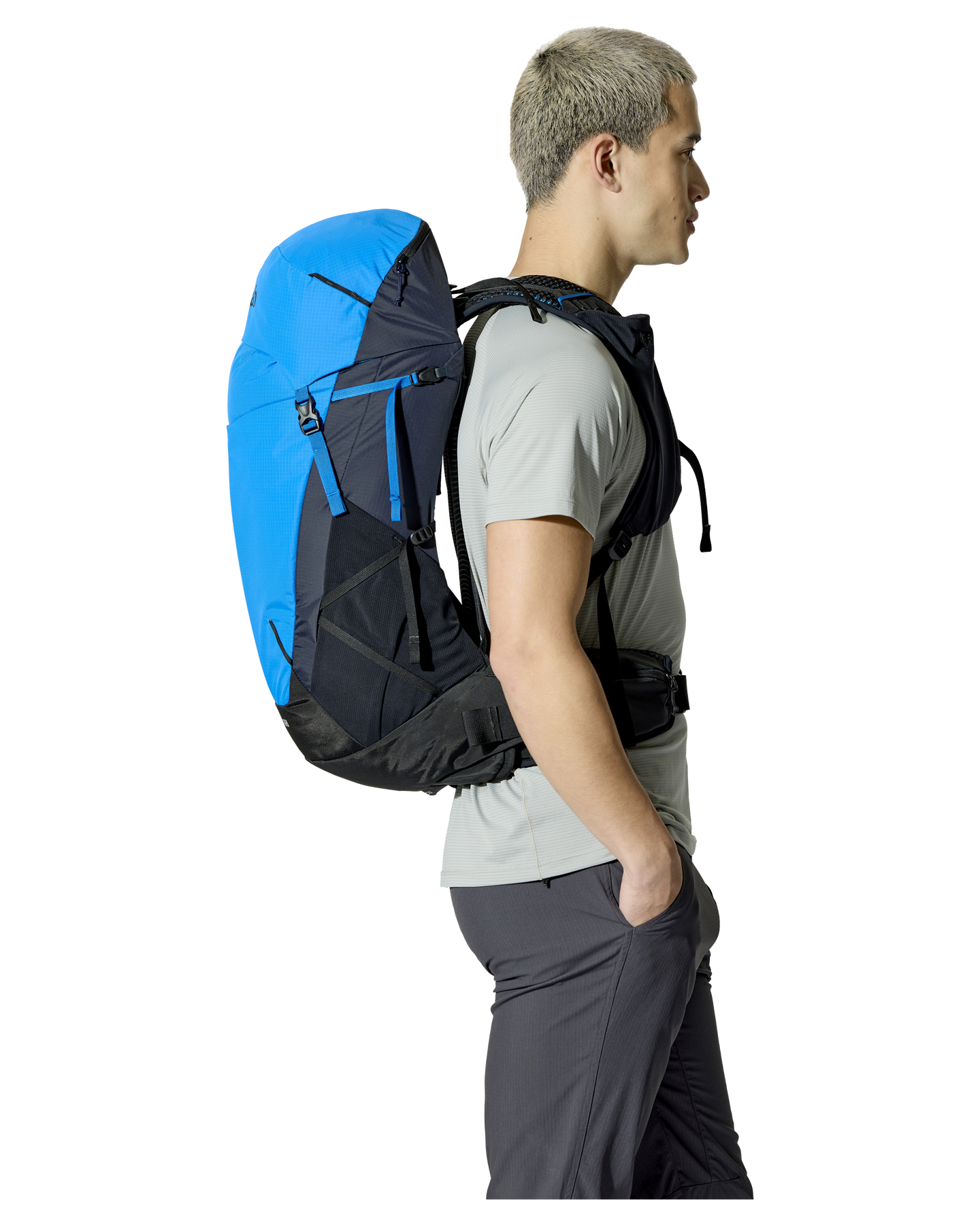 Stretch front stash pocket, Stretch mesh water bottle side pockets, Chest strap storage for on-the-go access to a soft flask and essentials, Forward pull hipbelt adjustment with zipped pockets |